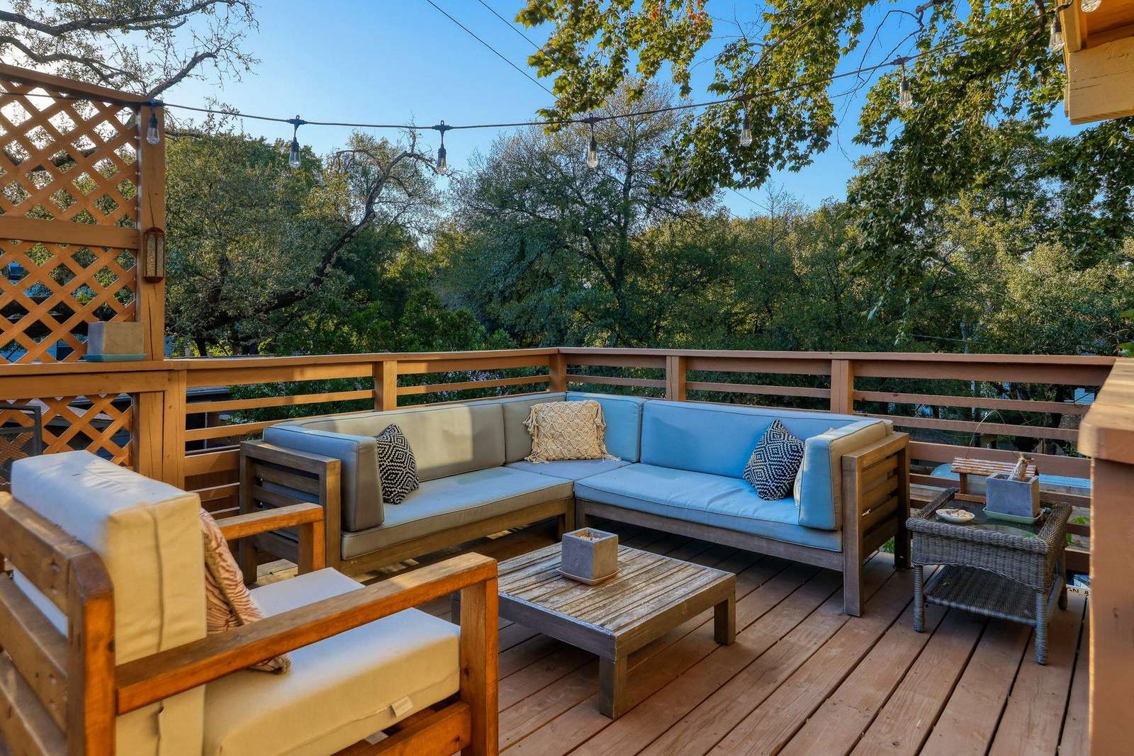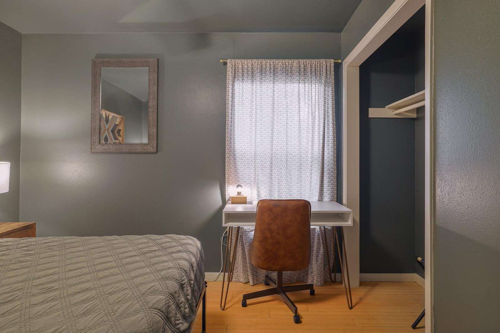 The bedrooms have a king and queen beds and the shared bathroom has a shower/tub combo. The living room opens up to the large side porch. Wonderful natural light throughout the living spaces!