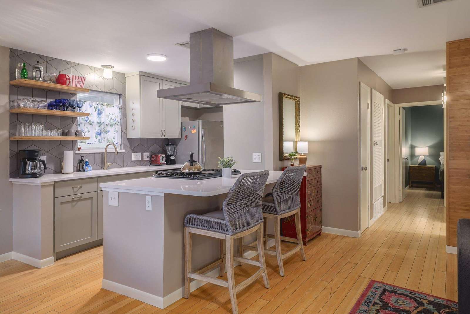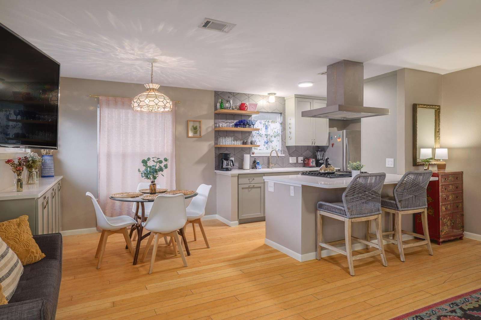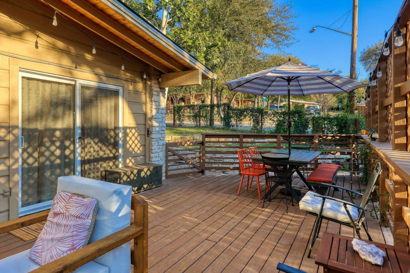 Discover the perfect Austin retreat just 3 miles from downtown and the convention center! This updated home, nestled only 1.5 miles from Barton Springs and Zilker Park, offers a prime location. Immerse yourself in the local scene with popular dining spots like Kerbey Lane Cafe and Torchy's Tacos just blocks away. The remodeled kitchen and bathroom, bamboo floors, and an open concept create a welcoming atmosphere. Enjoy modern amenities, including gigabit internet and a smart TV in the living room and in the primary king bedroom. With a fully fenced yard and pet-friendly policy, this is your ideal family or colleague getaway.